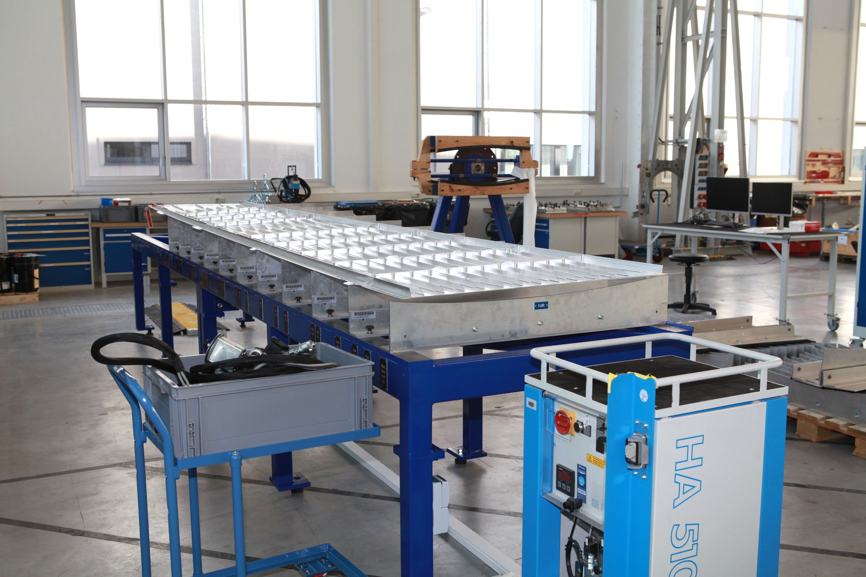 Alle Planungen für den Zusammenbau des Tragflügels wurden bereits abgeschlossen und die Vorbereitungen befinden sich in den letzten Zügen. Die benötigten Werkzeuge und Vorrichtungen wurden vermessen, aufgebaut und warten nun auf die ersten Panele.